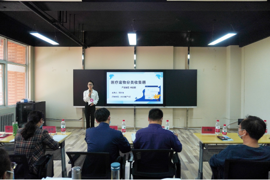 公司党总支书记张翊为大赛致辞。张翊书记强调创业大赛对于老员工创新能力的培养具有十分重要的意义,鼓励同学们要勇于创新,敢于创新。经教研室前期选拔,共8支团队进入决赛,各团队以PPT汇报的形式展示了项目的主要内容及创新点。其中发明组《恒温吸奶器》《医疗废物分类收集箱》项目成员通过图画与3D技术成像相结合,充分展示了其作品的创意与想法。创意组《养老服务测评平台》项目团队依托养老专业优势,着力设计研发一项养老服务测评平台,对养老机构的环境、饮食、服务态度进行全面、真实地测评,从而为老年人选择养老机构提供信息与帮助。此项目博得了评委的青睐,最终在比赛中荣获一等奖。