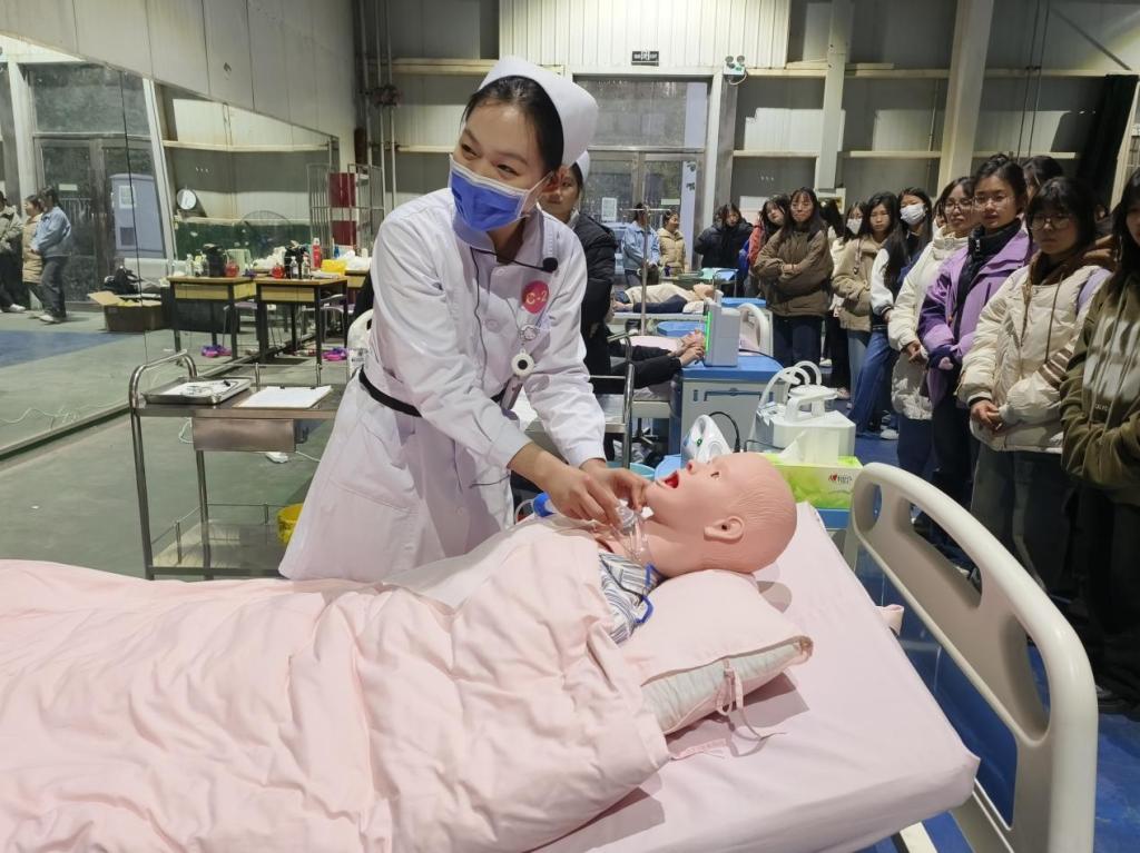冬忽至,寒冷没有降低体操馆内热烈的气氛。一年一度的河南省护理技能大赛日益临近,为提升参赛选手的临场发挥能力,同时帮助护理专业的员工了解护理技能大赛,深化以赛促学的目的,11月14日下午,由平菊梅老师带队的竞赛团队和教师指导团队,邀请护理专业全体员工分三批进行技能操作展示观摩。