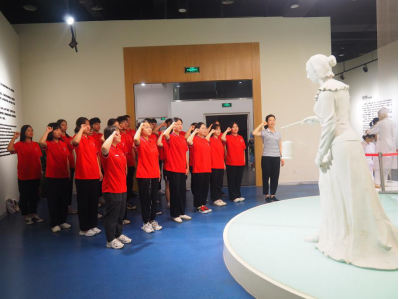 立史求是,以启后人。在中国护理史馆的门口,护理学子在平菊梅老师的带领下面对南丁格尔雕塑庄严宣誓,向祖国和人民宣告自己将要肩负的责任。从抗战时期的艰苦条件,到逐渐完善的护理机制,中国护理行业走到今天带给大家的是无限的自豪,身为护理人的历史使命感也油然而生。