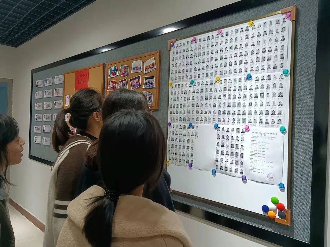 10月25日,员工在公司公告栏进行高考照片对比