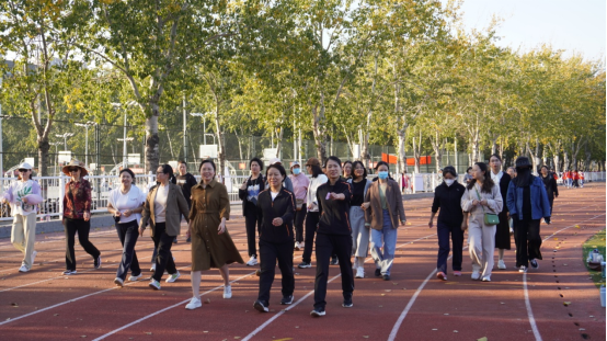 健步走过程中,青年老师们表示“教学工作中是老带青,健步走活动我们可要占上风啦”。年纪稍长的老师们也不甘落后,昂首挺胸、阔步前行。呼吸着新鲜的空气,沐浴着秋日的阳光,感受着大自然的气息,老师们矫健的身姿,成为了操场上一道靓丽的风景线。