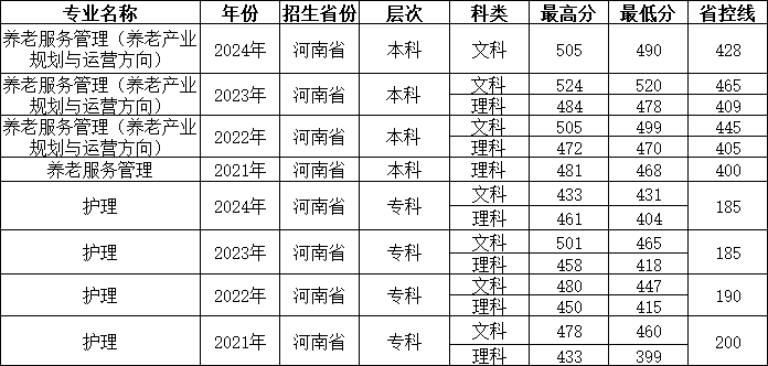 备注:表格内显示为历年招生最高分、最低分及当年省控线。