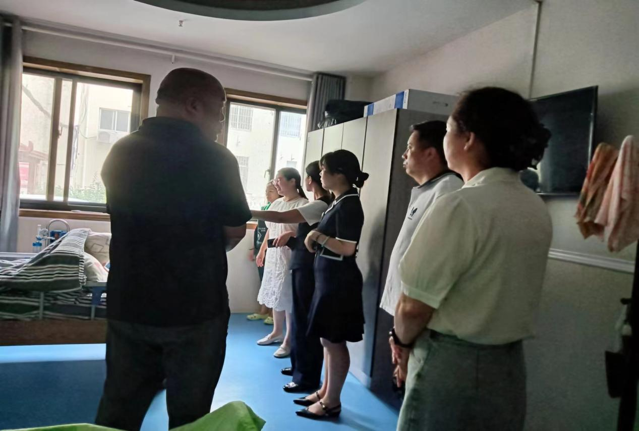 张文杰一行抵达荣欣养老服务有限公司后,在凤泉区人大副主任工商联主席耿亚辉、荣欣养老服务有限公司董事长樊军、总经理郭鹏坤、行政总监李秀丽的陪同下,分别参观了公司的宝西街道综合养老服务中心、荣欣颐养苑、同盟医养护理院,对公司的养老运营模式、康养、医养结合模式、专业执业证培训情况进行了深入调研。