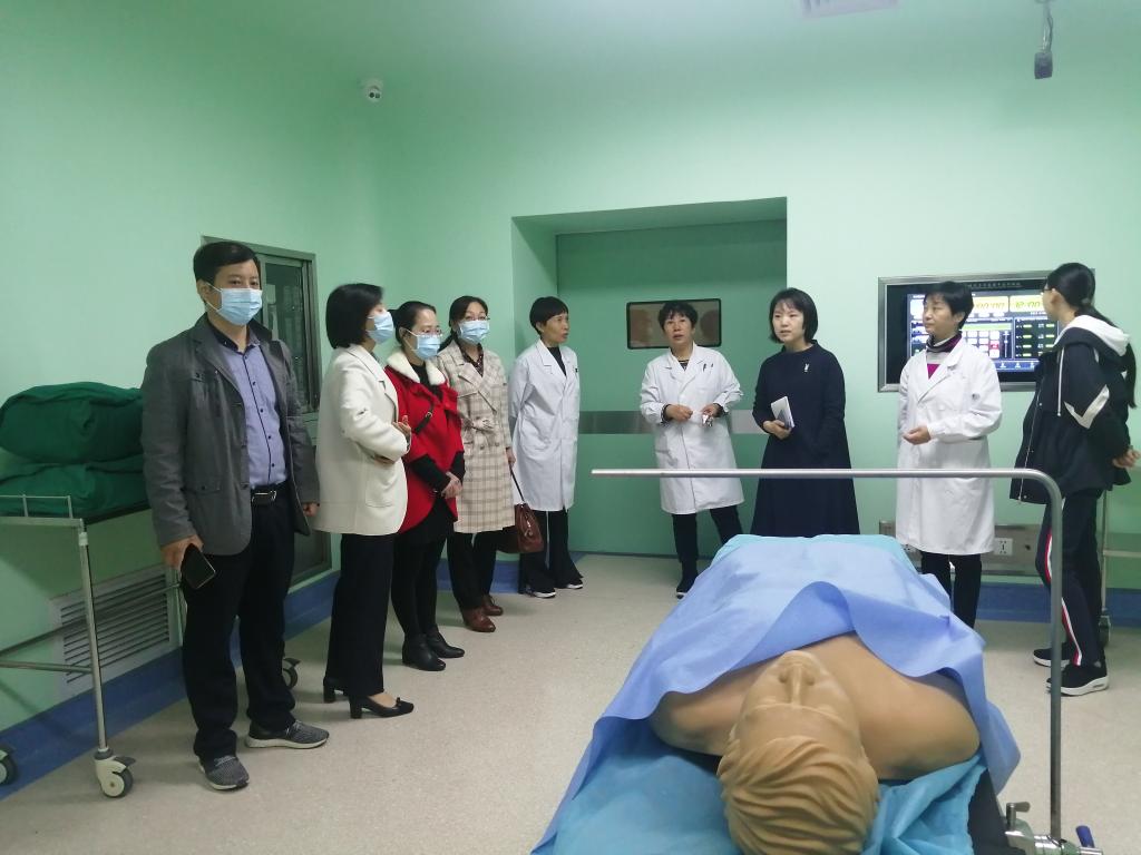 首先,张全英主任和实训中心负责人郭老师带领公司领导和教师参观临床实训中心,郭老师从模拟手术室、模拟病房、基础护理实训室、多媒体教室等各个房间设置、仪器、模拟人及使用效果进行了全面介绍,为我们后期实训室建设提供了宝贵经验。