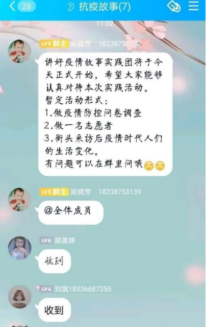 为使活动顺利开展,“讲好抗疫故事”实践团成员通过语音会议商讨了本次实践的内容及方式,并积极动员大家充分利用自身优势,以热情的态度投身到这次实践中去。