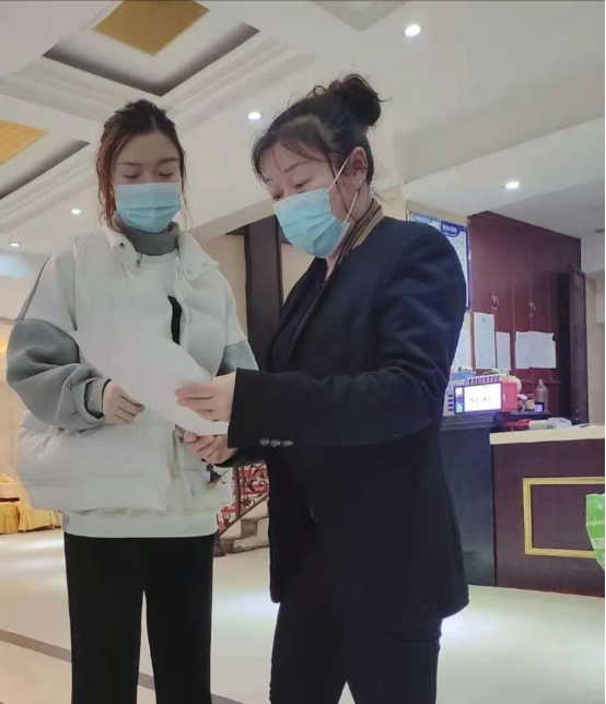 “阿姨你好,根据上级要求,我们要对您进行体温检测、信息登记,请您配合好吗?”实践团成员认真、用心、仔细的对过往车辆、人员进行检查,并耐心的运用所学知识向他们普及防疫小常识。