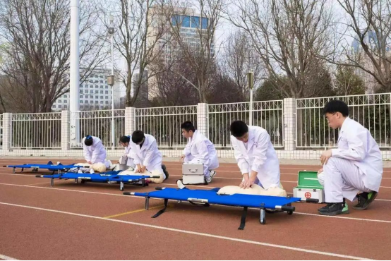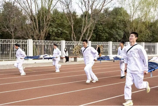 本次趣味运动会项目结合专业性和趣味性,不仅拥有了体育竞技的热情,更拥有了游戏的乐趣。设有担架急救接力跑、八人面对面接力赛、组队沙包投准、多人跳大绳4个项目,来自不同班级的10支队伍参加了这场运动会。比赛中,同学们配合默契、衔接流畅,充分运用自己的专业技能展开激烈角逐,在享受运动激情的同时,展现了医护人员“生命至上”的职业精神。