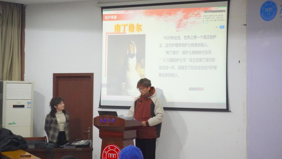 2024级护理2班王昊晟同学走上讲台,深情地朗读了南丁格尔的简介,并与同学们分享了内心的感动。同学们纷纷表示,南丁格尔的事迹让他们深刻认识到,作为未来的医护人员,肩负着救死扶伤、守护人民健康的重任,在大学期间一定会不断学习、提升自己,将来更好地服务社会。