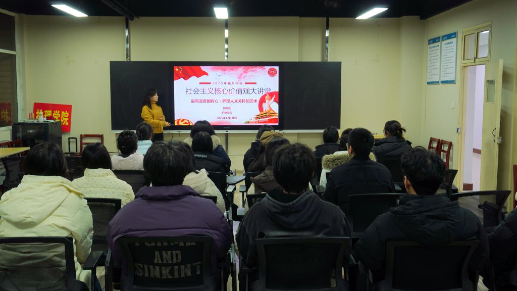 为深入贯彻落实党的二十大及历次全会精神,将社会主义核心价值观深度融入专业育人全过程,2025年12月30日晚,伟德国际bevictor1949在A14-215会议室举办2025年度社会主义核心价值观主题大讲堂。本次讲座以“最有温度的匠心:护理人文关怀的艺术”为题,由公司周筱鑫老师主讲。公司学工办主任闫泽雨、分团委书记许振山及员工代表出席会议。